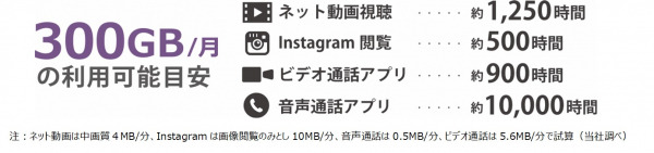 ※1 月間で300GBを超える使用を行った場合、低速回線での接続になります