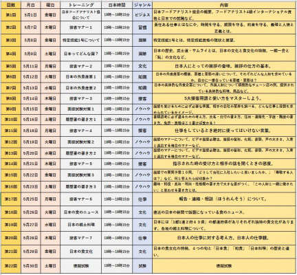 当協会の認定試験に合格した専任講師がゆっくりとした丁寧な日本語で講義いたします。語学しかできない通訳が講師をする講座ではありません。日本の食文化や食習慣、外食業、接客などについて、当協会の専任講師が、1000枚を超える膨大な資料をもとに、絵、図や写真、身振り手振り、を交えてわかりやすく教え、受講生全員の合格を目指します。講義自体は4日間ですが、講義終了後に「4択問題練習アプリ」「4択模擬試験アプリ」「一問一答単語帳アプリ」を全員に配布、ゲーム感覚で試験直前まで試験問題練習ができます。