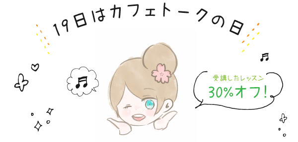 2020年4月19日に受講したレッスンのポイントの30%をポイントバックする大人気のキャンペーンを今月も開催します。レッスン受講数が伸びるため先生方にとっても新しい生徒様との出会いのチャンスであり、また生徒様にとってもお得に受講できるカフェトークからのお礼キャンペーンです。
