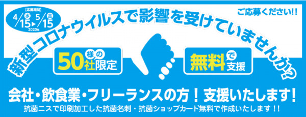 タイトル 【無料支援】新型コロナウイルスで打撃を受けている企業へ支援!ウイルスに打ち勝つ抗菌ビジネスカード!抗菌ニスで加工した抗菌名刺・ショップカードを無料で50社分を作成いたします。