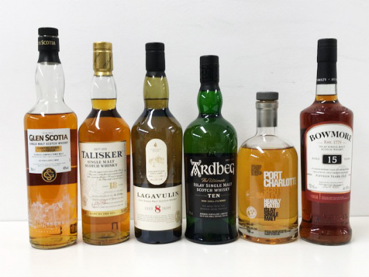 第1回は東京ウイスキー&スピリッツコンペティション(TWSC)の出品ボトルを中心に、スモーキー、ピーティ―なキャンベルタウンモルト、アイランズ、アイラモルトの中から6本を選んでいます。