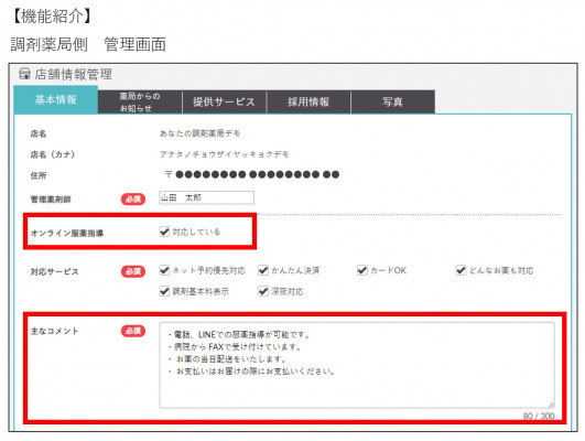 2:薬局は自局の特徴・特色をカスタマイズできるマイページで患者に自局をアピールできます。
