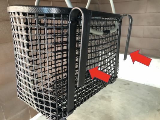 ・タイトル:ハンドルや荷台に引っ掛けるだけ。持ち運べるバスケット&ショッピングカート!