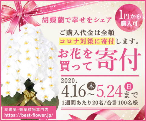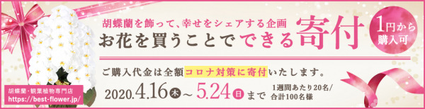 【内容】 コロナ対策で販売代金を全額寄付する胡蝶蘭の販売は、2020年4月16日から5月24日までの間、次の内容で行います。
