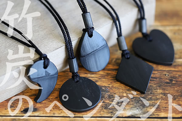 竹炭のもつ独特の美しい光沢をお届けしたい、胸元を渋く輝かせたいという想いから、こだわり抜いて仕上げたネックレス。装いのアクセントに加えてみてはいかがでしょうか。