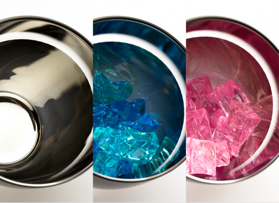 注がれるお酒の色によりグラス内面の彩りが変化します。