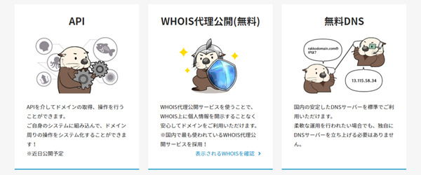 APIを介してドメインの取得、操作を行うことができます。