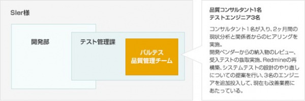 解決 : 初期メンバーが実際にテスト業務を行い、課題点を洗い出し。改善点を絞り、メンバーを追加することで、計画的なプロセス改善活動を実施中。