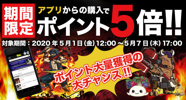 ◇キャンペーン内容:ビーレジェンドアプリのショッピング項目から購入するとポイント5倍!