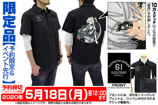 「涼月 刺繍ワークシャツ」は、5月下旬に二次元コスパ通販をはじめとする〈コスパオフィシャルショップ〉や、〈ジーストア・ドット・コム〉での先行販売も決定!いち早く手に入れられるこの機会をお見逃しなく。