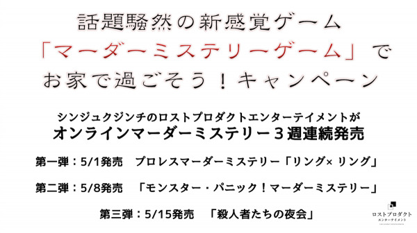 オンラインでも楽しめるマーダーミステリーゲームを、マーダーミステリーファンだけでなく、より広く一般の方にも楽しんでいただきたいと思い、キャンペーン価格568円(コロナに勝つという意味合いで567+1円)での発売を行います。