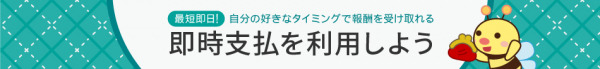 即時支払機能とは、通常の成果報酬の支払サイクルよりも早く、自分の好きなタイミングで希望の口座に振込むことができる機能です。
