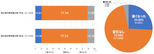 流行前と比べた、パパの育児参加率や祖父母の育児協力率などの変化についてお伝えします。