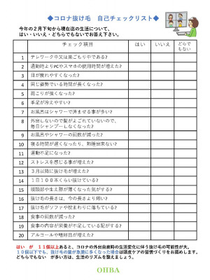 ◆コロナ抜け毛 チェックシートの取得について