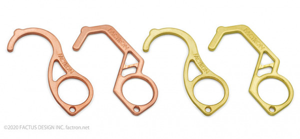 殺菌作用やウイルス等の不活性効果がある純銅と、銅に次ぐ殺菌効果がある真鍮(しんちゅう)を削り出しました。