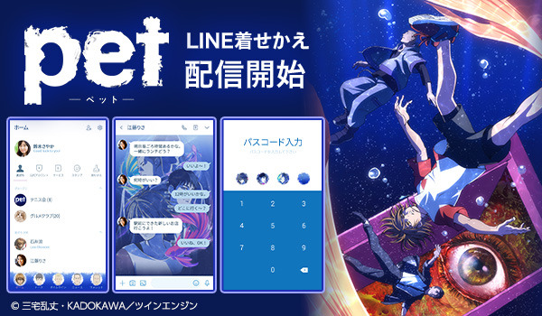 2018年と2019年に2本の舞台化だけでなく、2020年にはTVアニメ化を果たした「pet」がLINE着せかえとなって登場です。人の記憶に潜り混み、記憶を自在に操る特殊能力者たちの物語となっております。記念すべき第一弾は、青を基調とした爽やかなのに独特な雰囲気を感じる着せかえ。是非、LINE着せかえで「pet」の世界観をお楽しみください。