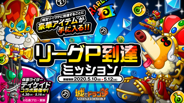 株式会社アソビズム(本社:東京都千代田区、代表取締役:大手智之)は、App Store・Google Playにて好評配信中の『城とドラゴン』で、「リーグ」および「リーグP到達ミッション」を2020年5月10日(日)より開催いたします。