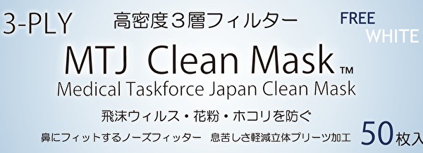 使い捨てマスク 3-PLY MTJ Clean Mask -Medical Taskforce Japan Clean Mask-