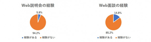 今回Web講座を受講する以前に、Web説明会やWeb面談の経験があるか尋ねたところ、Web説明会の経験がなかった方は94.2%、Web面談の経験がなかった方は85.2%でした。