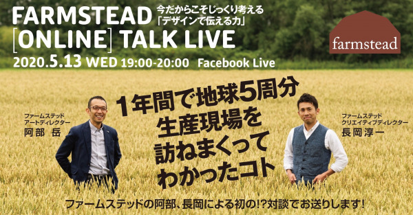 株式会社ファームステッド(本社:北海道帯広市、代表取締役:阿部岳・長岡淳一)は、このたび5月13日(水)19:00より「デザインで伝える力」をテーマに、対談特別トークセッション「ファームステッド[オンライン]トークライブ」をオンライン開催いたします。