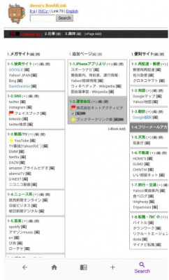 (+ボタン).....追加ボタン、現在表示しているURLをBooMLinkにワンクリックでブックマークとして追加します。(保存先:「追加ページ」列の「Android(iPhone)アプリより」行にリンクが追加されていきます)検索ボタンで追加したいホームページを表示させ、この追加ボタンを押していくやり方がおすすめです。追加後のカテゴリ移動・並び替え・編集も一瞬でできる簡単なものなので、どんどん追加して仕分けしていきましょう!