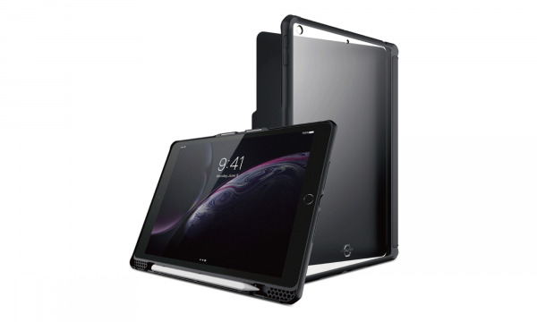 フリップカバーをケース背面で折りたたむことによって、スタンド機能も有しています。また、Apple Pencilを収納する専用ホルダーも設けられており、端末保護以外の機能性も魅力的です。