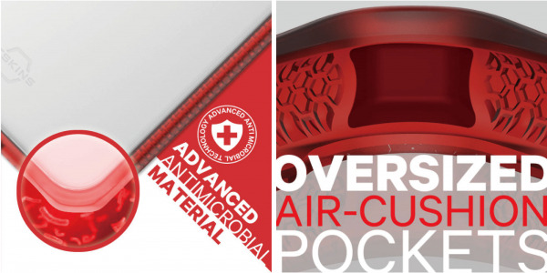 クリアのポリカーボネートおよびブラックの衝撃緩衝ポリマーで構成されたハイブリッドケースとマグネット付きのフリップカバーでiPad本体をしっかりと保護します。ケース内側の衝撃緩衝ポリマーはITSKINSの特徴であるハニカム構造で設計されており、さらに、コーナー部分に施された衝撃を吸収するエアポケット構造によって、スリムでシンプルなケースでありながら、評価機関であるSGSによるMIL-STD-810Gの落下衝撃試験2mをクリアしており、十分な耐衝撃性能も有しています。