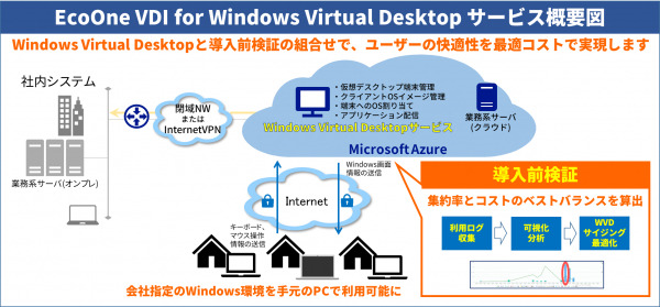 今回のサービスは、日本マイクロソフトが提供するクラウド型仮想デスクトップ「Windows Virtual Desktop」とIT環境可視化ツール「SysTrack」による導入前評価を業界で初めて組み合わせたサービスです。他VDI比最大50%コスト削減とパフォーマンスの両立を実現することができます。本サービスをテレワークを推進する企業向けに、2021年3月までに30社への導入を目指します。