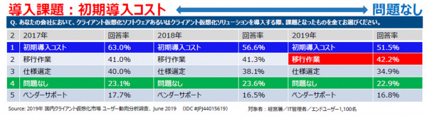 ■ クライアント仮想化導入の課題の推移:2017年~2019年