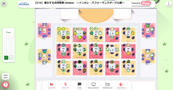 本イベントでは、新入生とサークルの部員が会話をしながら交流を深めることで、複数の団体を比較しながら自分に合ったサークルを探すことが可能です。第1回の参加団体はインターカレッジ・パフォーマンスサークル12団体、参加者は大学1,2年生合計77名でした。