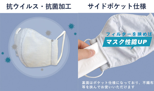 また、当社の設備である特殊機能加工設備を使い、自社工場にて抗ウイルス・抗菌加工をかけています。洗濯をしても効果は持続します。