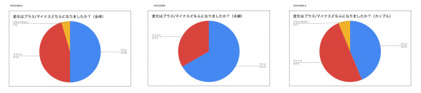 夫婦の場合には変化がプラスになったと回答する人が多く、カップルになると変化がマイナスになったと回答する人が多くなります。