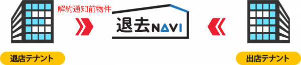退去NAVIはテナント退去希望者が登録した物件と事前にサイト内に登録されている入居希望者の希望条件をマッチングして退去費用を削減するサービス。退去希望者は退去NAVIを利用することで解約通知前の物件を居抜きで入りたい事業者にそのまま引き継ぐことが可能なため、退去費用を大きく抑えられます。利用料は無料で、退去側には契約成立時に情報料として賃料1カ月分をキャッシュバックしております。