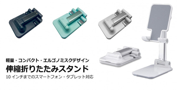 ・折りたたみ式で持ち運び便利!なエルゴノミクスデザインのスマホ、タブレットスタンド