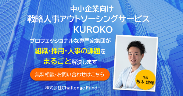 『KUROKO』は、中小企業を専門とした“人材採用”、“組織構築“、”人と組織が活躍する仕組みづくり“など、人事と組織の面から企業成長をサポートするサービスです。