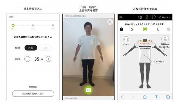 unisize(https://cl.unisize.makip.co.jp/)はネットで洋服を買うときに、より身体に合ったサイズを推奨するレコメンドエンジンです。機械学習アルゴリズム(AI)を用い、お手持ちのスマートフォン端末で撮影した正面と側面の全身写真から、腕の長さや肩幅などの体型を採寸します。従来のような専門知識やメジャーを用いて採寸するような手間をかけずとも、自分に合うおすすめサイズを確認できます。また、過去に買った洋服と比較する購入履歴比較機能なども併設し、ユーザーの持つ情報に合わせてサイズを確認することができます(※特許取得)。