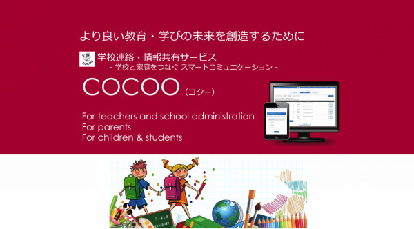学校連絡・情報共有サービス「COCOO(コクー)」は、24時間欠席電話自動受付&集計や、学校と家庭/教職員間の情報共有をよりスマートに行うWEBサービスです。教職員の負担となっていた業務を軽減し、保護者の利便性を高め、より良い学びの環境づくりをサポートします。