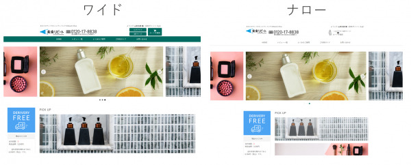 クリック一つでサイトのデザインのレイアウト(ワイド/ナロー)を選ぶことが可能です。