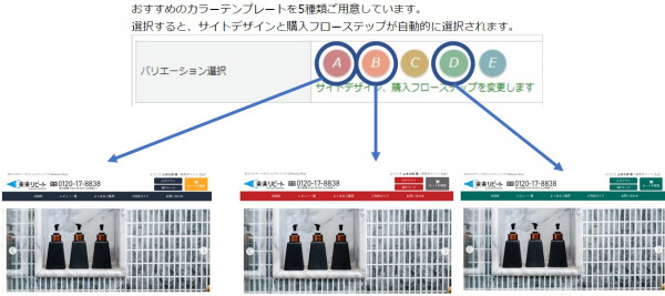 デザイン管理機能とは、サイト内のカラー設定や購入完了までの画像変更などのデザイン関連の設定が、マウスのクリックだけで簡単にできる機能です。