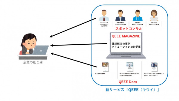 内 容 :QEEEマガジン、QEEE Docs、スポットコンサルサービス、社外取締役マッチングサービス