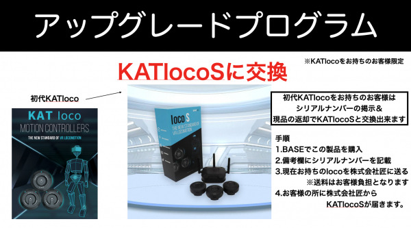 中国KATVRの日本総代理店を務める株式会社匠(本社:愛媛県松山市 代表取締役:栁澤匠輝、以下匠)は、2021年1月5日から新製品の家庭用歩行型VRセンサーデバイスKATlocoを新製品のKATlocoSに変更出来るプログラムページを公開しました。
