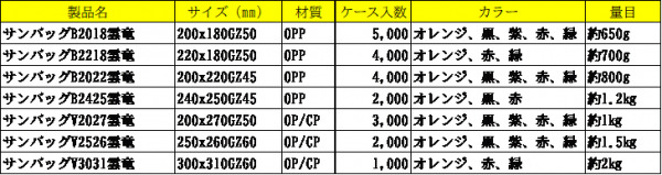 エフピコチューパが製造販売している「サンバッグ雲竜シリーズ」は現在多くのスーパーマーケットや直売場の青果売り場を華やかに演出している。その演出を可能にしている一番の要素は、オレンジ、緑、紫、赤などこれまで野菜果物の包装資材では稀である強いカラーをあえて取り入れることで、青果売り場での製品差別化を図れる点である。高級感を演出する包装資材は従来“黒”が定番であったが、そのセオリーを覆し、現在の販売好調を躍進させている。