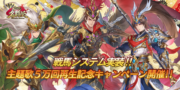 Playbest Inc. (本社:東京都中央区)は、現在配信中のiOS /Android向けゲーム「三国志名将伝」におきまして、1月11日実施予定のアップデートにおいて、新システム「戦馬」を実装いたします。