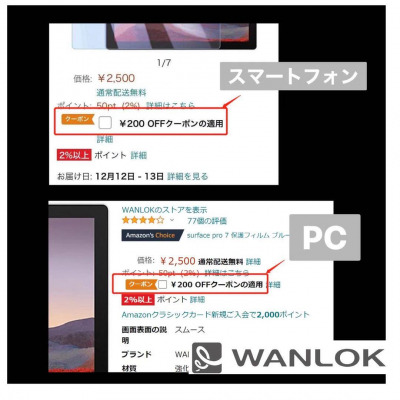 人気iPadやdocomoらくらくスマートフォンシリーズ加えて、2020年WANLOK人気NO1の商品『マイクロソフト Surfaceシリーズ』のガラスフィルムも、20%オフクーポン配布します。