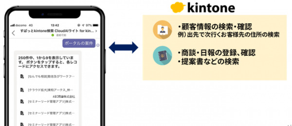 使い慣れたチャット感覚で複数の「kintone」業務アプリを検索
