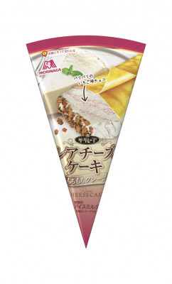 この度の「ザ・クレープ<レアチーズケーキ>」は、ナチュラルチーズとレモン果汁を加えた爽やかなレアチーズアイスに、パリパリのいちご味チョコをあしらい、クッキークランチをトッピングしました。 大人が満足できるこだわりデザート品質の「ザ・クレープ<レアチーズケーキ>」の発売で、冬のアイス市場を盛り上げてまいります。