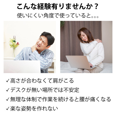 ・好きな高さに自在に調整できるので、姿勢改善や寝ころびながらの操作も可能。