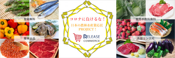 食のオンラインマーケット「RELEASEコマース」は、農業や漁業の物流に変革をもたらすことを目的として、農家の方々が丹精込めて栽培した野菜や果物、漁師の方々が水揚げしたばかりの新鮮な魚介類などはもちろんですが、家庭菜園で栽培した野菜に至るまで【その場で】【リアルタイムに】【出品料無料】で生産者と消費者が”直接”繋がる「食」のオンラインマーケットです!