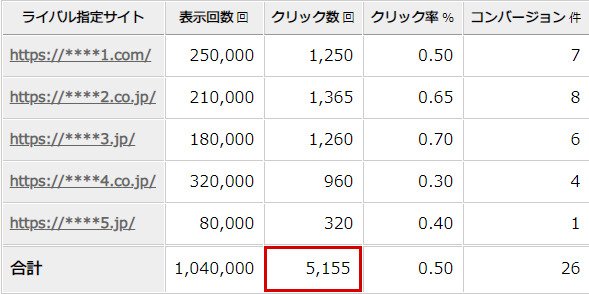 a:ライバル指定したサイトを閲覧したユーザに自社広告が表示された数