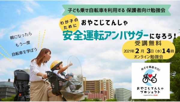 おやこじてんしゃに乗る期間を楽しい思い出としてほしい。想いを同じくするパパママと「安全運転宣言」をする、おやこじてんしゃアンバサダー養成講座を開催します。
